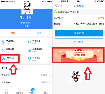 3.按提示下载杭银直销app,新用户注册开户,老用户直接登录。点击“我的资产”充值10元,购买“幸福如金”别买错了!