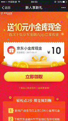 3.成功领取后,再点击“立即下载”安装京东金融,并用刚才的帐号登录app。