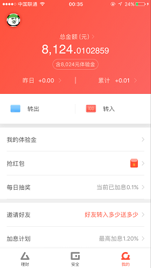 4.还有首次转入100送的3000元体验金,一共8124元体验金,根据以前参与过的小伙伴反应3天差不多有5元左右的收益。