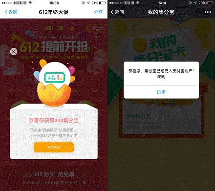 一般至少可抽中200集分宝。抽中后,再打开微信扫描下图二维码