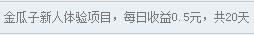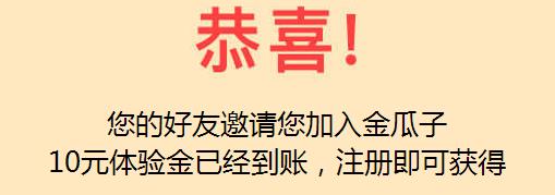金瓜子是一个天上掉馅饼的平台,无论你信不信,反正现在注册即送1000金瓜子(相当于10元体验金),购买新人体验项目后,每天可产生0.5元收益,最低2元即可申请提现,有0.5元手续费,也就是免费玩最少要5天后才够提现,你敢不敢吃这个饼?