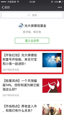 1.打开微信搜索“光大保德信基金”(微信号:EPF-4008202888),关注后,查看历史消息。