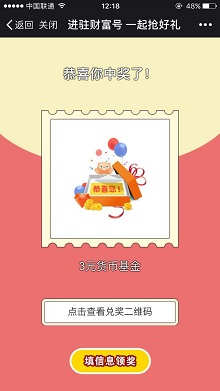 3.最少都是抽中3元,最多500元,点击“填信息领奖”,按提示填写你的姓名和手机号即可。
