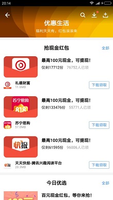 4.进去后,可以看到里面推荐的下载后能领取到红包的app。
