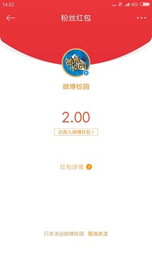 几天前还推荐过微博红包活动,今天又出来一个,新浪微博app举办的微博校园开学季完善信息送红包免费有奖活动,活动期间参与活动填写信息,即可有机会赢取微博红包奖励,一般都至少中1元以上,亲测中了2元。