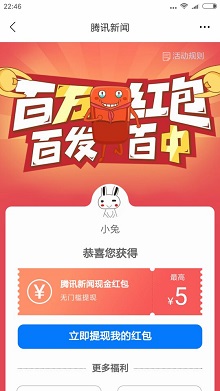 3.按提示点击“立即提现我的红包”会跳转到腾讯app,按提示直接提现即可。如果提示领完,第二天再早点去即可。