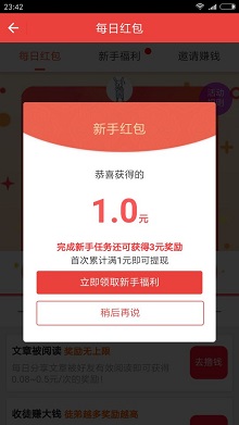 2.选择微信登录,按提示拆红包,显示是1元,其实只到0.88元,需要在“新手福利”签到和看下新手教程,即可累计到1元以上。