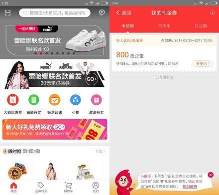 3.如果你是首次使用一淘,记得直接选择手机淘宝登录后,点击首页中间“新人好礼免费领取”,输入邀请码:(VL1ZY)注意是大写。领取后可在“我的”-“我的礼金券”中查看是否到账。