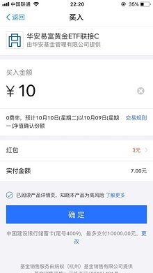 3.如图,如果和我一样抽到3元黄金红包,点击“立即查看”进入,买入金额填10,实际支付7元即可。