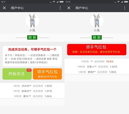 3.发完后,点击第2步的链接进入按提示关注10-20个公众号,然后点击“领取手气红包”。
