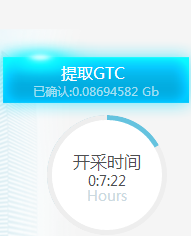 4.回到“矿池”页面,即可看到你的矿机已经运行了,记得每天登录提取一下GTC即可,每天差不多能挖20个左右。