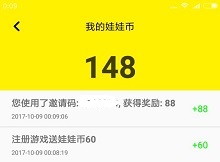 每邀请一个好友输入了你的邀请码,你和他(她)双方都能获得88娃娃币奖励!
