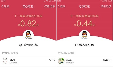 点击【立即捐款】按提示完成1毛钱的捐款,再回到活动页面点击底部的【查看礼包】进去选择【随机现金红包】,所有奖励都可以领1次,现金红包是随机的,一般都是几毛钱,亲测领到了0.82+0.44元!