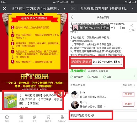 4.如果能购买会显示“立即抢购”按钮,需要下载app,用你手机号登录,点进去购买支付0.01元就行了,如果不在购买的时间段,会显示倒计时,自己算下几点开始,到时再买即可。