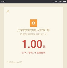 我今天去晚了,只领到一个1元的红包,你们猜是哪个活动?