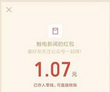 触电新闻是广东广播电视台旗下新闻资讯视频聚合平台,目前新用户下载触电新闻app,注册后即可免费领取1-200元微信红包,不过一般都只在1元多。不过像这类平台,奖励虽少,也没什么难度,人人都可以参与,领一次就跑!