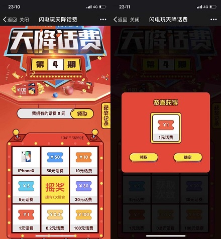 果不其然,第三期活动后,闪电玩第四期“天降话费”来了,依然新老用户,人人有份,必中至少1元话费,之前参与的不管是秒到还是延迟,都顺利到账了!试问还有哪个平台能这么任性?