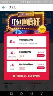 如果不弹,可能就是结束了,一般新用户都可抽中0.88元,秒到支付宝余额!还有外卖红包,是在饿了么点外卖时抵扣现金的!