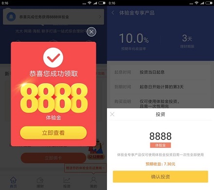2.安装后,注册为会员,即可获得8888元体验金,按提示领取并投标即可。