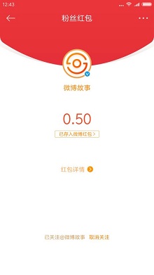 新浪微博的微博故事又开始免费送红包,新老用户均可参与,进入活动页面后,随便分享一条故事,即可免费领取现金红包,金额随机,最少0.5元,可直接提现支付宝的!