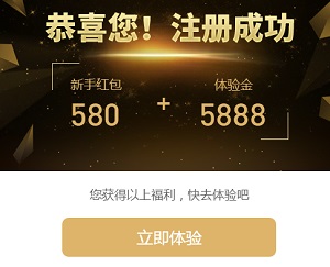 1.进入后,注册为会员,会提示你获得5888元体验金,如果没提示,可能是已经结束。