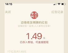 3.进去后,直接点领取红包即可,微信活跃号都是秒推的,亲测我抽到1.49元!