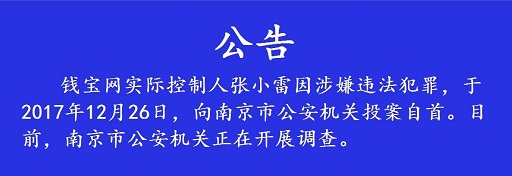 今天发生一件大事“钱宝网实际控制人张小雷因涉嫌违法犯罪,于2017年12月26日,向南京市公安机关投案自首”,意味着钱宝网正式倒闭了,不管你相不相信,现在已成为事实。那么钱宝网倒闭,对我们到底有什么影响呢?