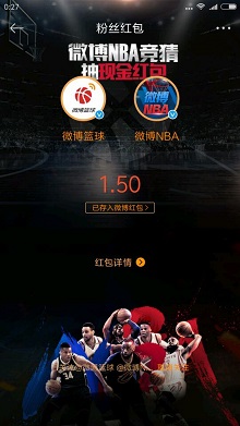 新浪微博正在举办“微博NBA竞猜抽现金红包”活动,通过活动页面参与一次竞猜后,一般都可以抽中0.5元以上,亲测抽到1.5元。个别黑号,万年不中奖,那估计没人能拯救你了。