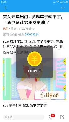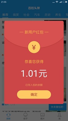 百姓头条是糗事百科旗下的新闻资讯平台,目前应该是推广期,只有安卓版。注册为会员后,可以每天看新闻免费赚钱,这个也不是什么新鲜事,但是现在有个“阅读奖励”的任务,一个月可以赚100元以上,最低5元即可申请到支付宝!