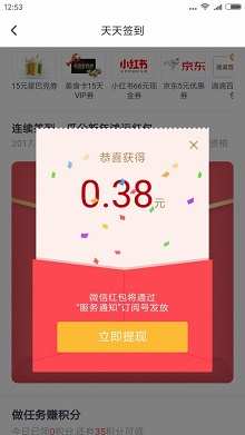还有之前腾讯新闻签到的瓜分红包,登录后,点击“我的”右上角“天天签到”下拉找到“瓜分红包”直接提现。