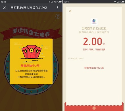 目前公众号“全网通手机汇”正在举办“答题赢红包活动”参与答题后即可免费抽奖,不是100%的中奖率,但几率很大,亲测中了2元微信红包,秒推送!