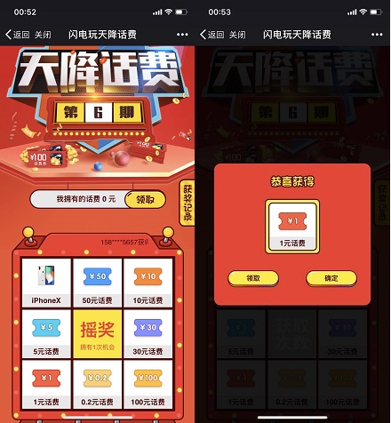 2018年1月又过快一半了,闪电玩也终于迎来第六期“天降话费”活动,和之前参与方法没多大区别,玩一个小游戏,几分钟即可获得1次抽奖机会,首次100%至少是1元话费,秒充到手机!
