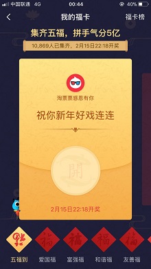 4.一天一般可以弄到3张福卡,当然很可能是重复的,你可以找亲朋好友换下。2月8日起,在蚂蚁庄园中收取金蛋;2月11日起,参与蚂蚁森林浇水活动(好友或合种的树均可)也能获得福卡。