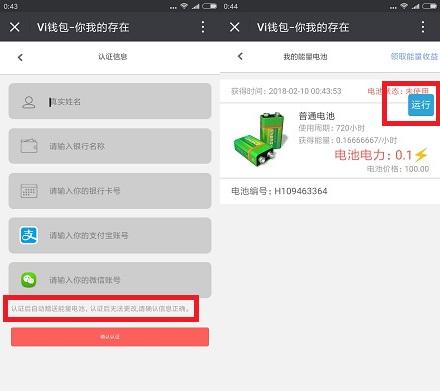 3.提交后,系统会自动免费赠送一枚“普通电池”,首次在“我的能量电池”进去手动运行下,以后也得手动领取能量收益,不用挂机。