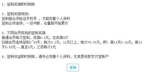 普通用户只能签到3次,一共0.3元,但如果你手机号多可多账号参与。至于白银会员,要投资100元,但光从签到的奖励来看,想回本太慢。