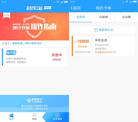 2.进入后,下载薪乐宝app,注册为会员,点击“进入存管版”,点击“我的”开通银行存管(实名认证和绑卡),即可免费获得10000元体验金。