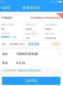 薪乐宝是深圳中兴网信科技有限公司旗下的理财平台,目前新老用户开通银行存管即可免费领取10000元体验金,投1天体验标后,预计可产生4.1元利息,能直接提现到卡,已经有人成功秒到账,无手续费!