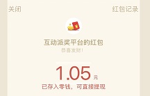 玩个简单小游戏,然后抽奖,不中就分享出去再抽2次,亲测中1.05元微信红包。
