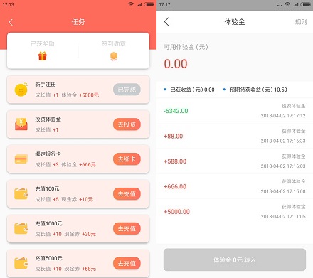 4.最后在“投资”顶部找到“体验标”把全部体验金使用即可,我有6342元,使用后预计收益10.5元!