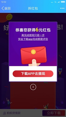 2.进入后,拆开红包,注册为会员,按提示下载拍拍贷借款app。