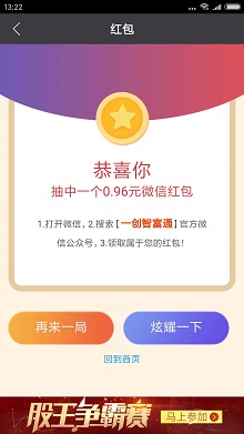 点击“抽红包”,需要下载app,在“首页”找到“谁是k线王者”活动入口,亲测抽到0.96元。