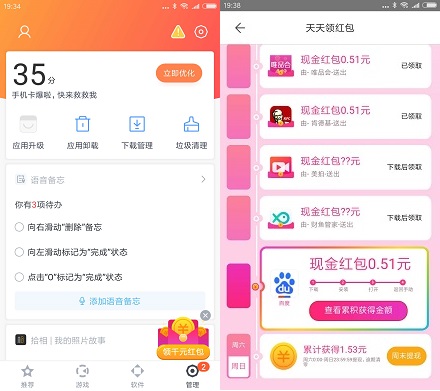 进入后,每下载安装一个至少0.51元现金红包,周末即可申请提现到卡。
