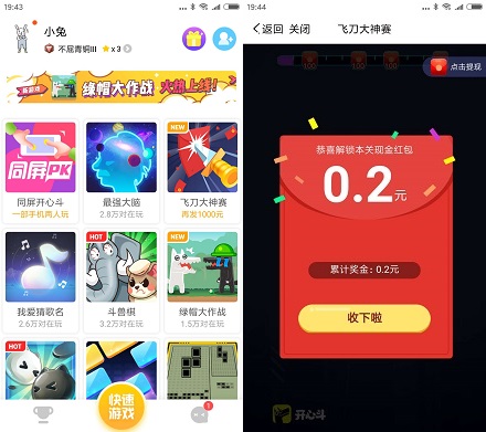 开心斗是YY旗下的手游平台,目前正在举办“飞刀大神赛”领现金红包的活动。