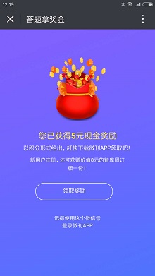 1.打开微信扫描后进入,会提示你获得5元,先别管,直接点击“领取奖励”下载安装app。