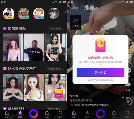 2.直接用百度账号登录,点击“挑战”可以看到那些带红包图标的话题,点进去随便拍摄个视频发布即可。