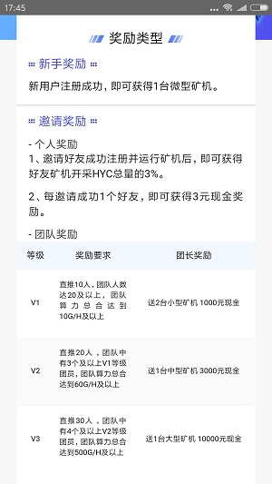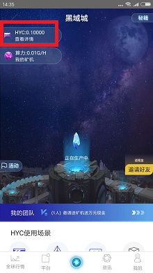 4.完成实名认证后,即可获得1HYC,每天登陆获得0.1HYC,免费送的微矿机可以挖30天共11HYC。目前还未开放交易,还不知道1HYC价值多少。