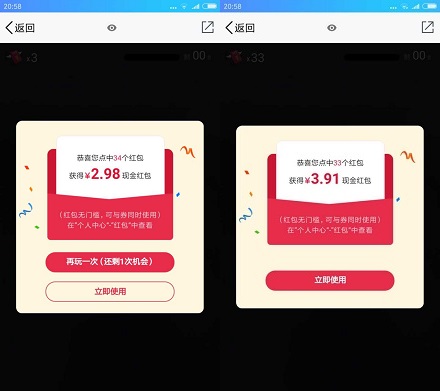 2.前两个(10元优惠券和8元红包)直接领取,红包雨(6月12日结束)可以抢2次,亲测免费领取到6.89元!
