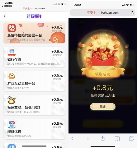 2.注册为会员,登录后,在“试玩赚钱”可看到相关任务。