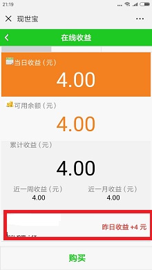 回到主页,点击“在线收益”进入后,点击红色标注的位置即可进入提现页面。