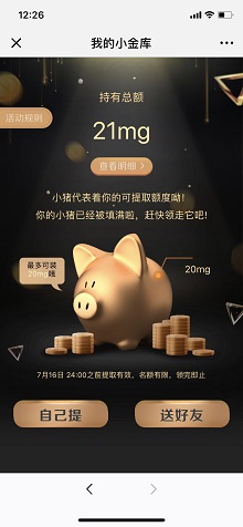 3.最多也只能提取20mg,点击“自己提”输入你在博时基金开户的手机号,活动结束后10个工作日内到账。